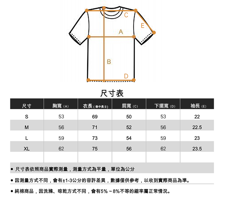 2. 衣物縮水不代表質料不好,只要是織物都會縮水,只是在於縮水的程度不同而已,在國際標準中棉製品的縮水率約3%~4%;尤其是純棉商品洗滌後有1~2公分的縮水皆屬正常現象,無法作為退貨基準。