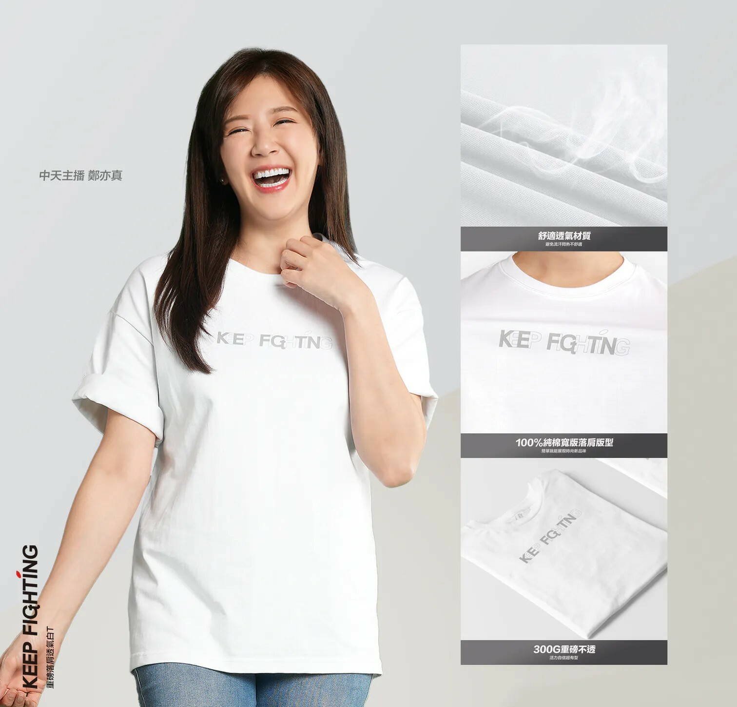 【中天文創KEEP FIGHTING 重磅落肩白T】