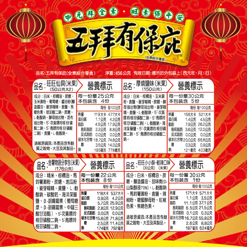 2.商品品名:五拜有保庇(全素綜合零嘴餅乾)