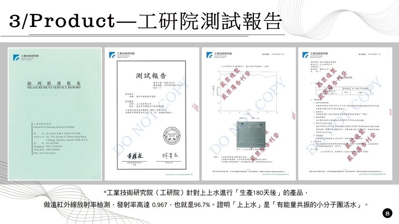 ◆國家級實驗中心檢測水中遠紅外線平均放射率為96.7%