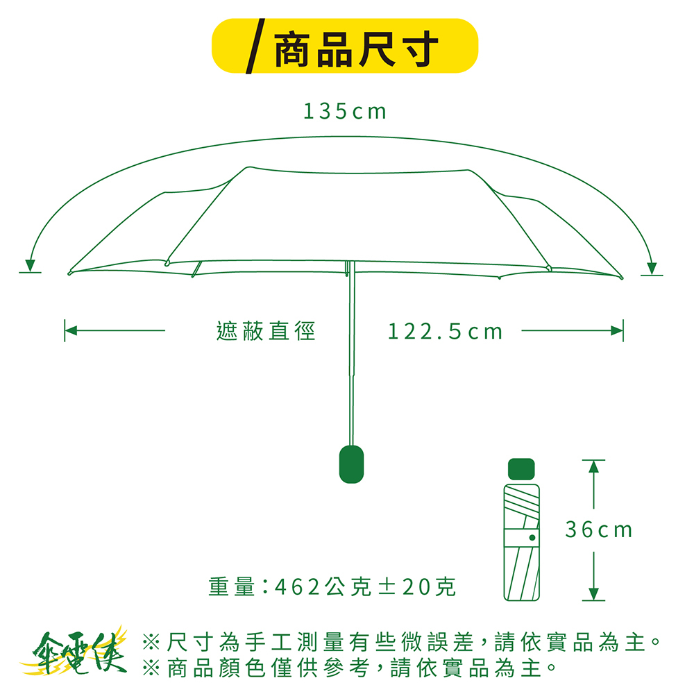 傘布:95.5%抗紫外線 超撥水府綢布