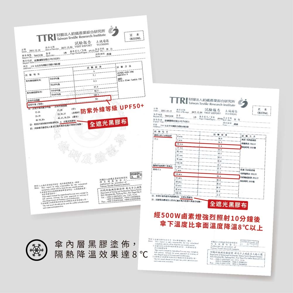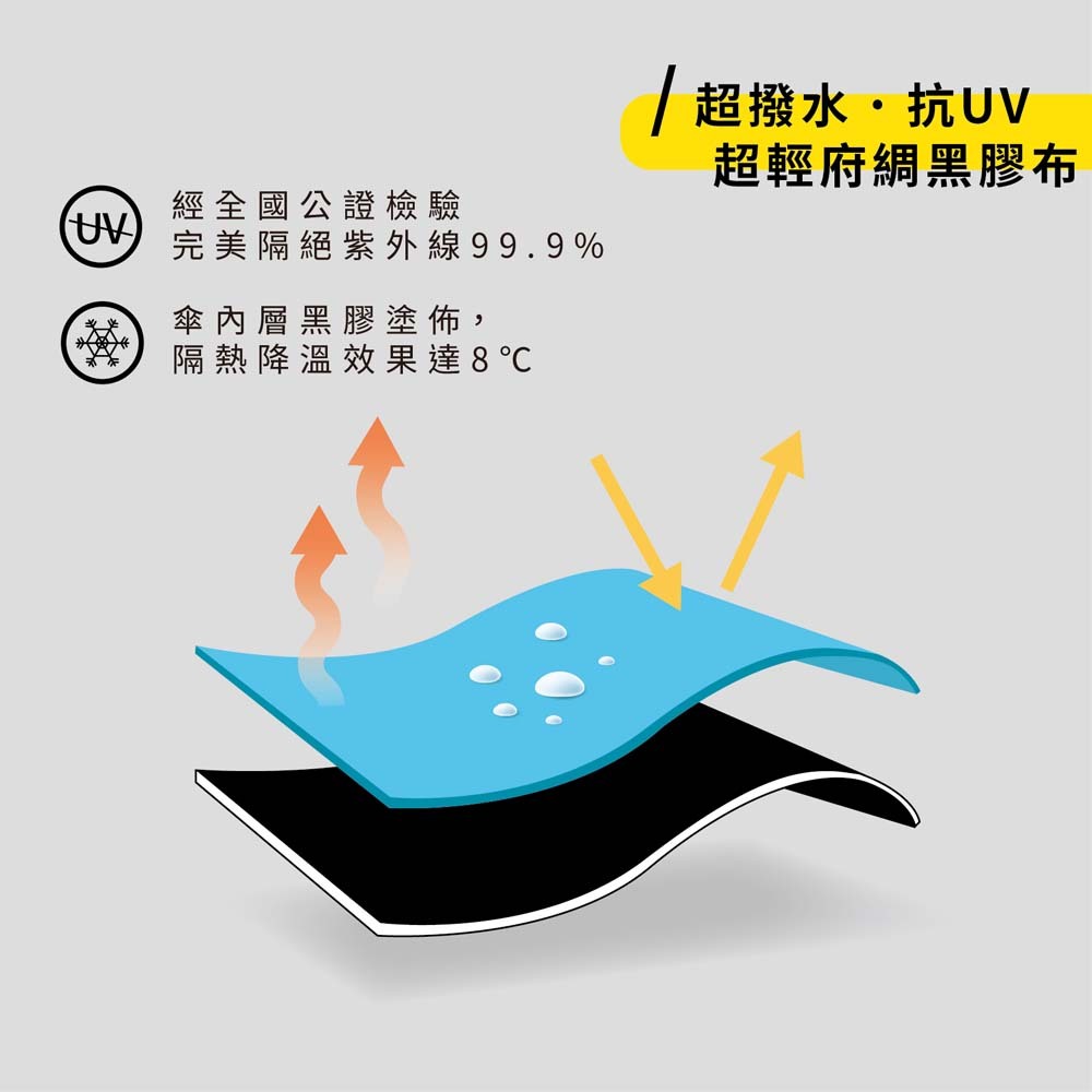 傘布:99.5%抗紫外線 降溫8度 Q39輕量黑膠亞光布