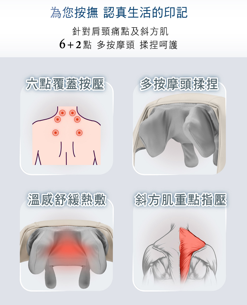 .仿人手按摩設計,多按摩頭 六點覆蓋按壓
