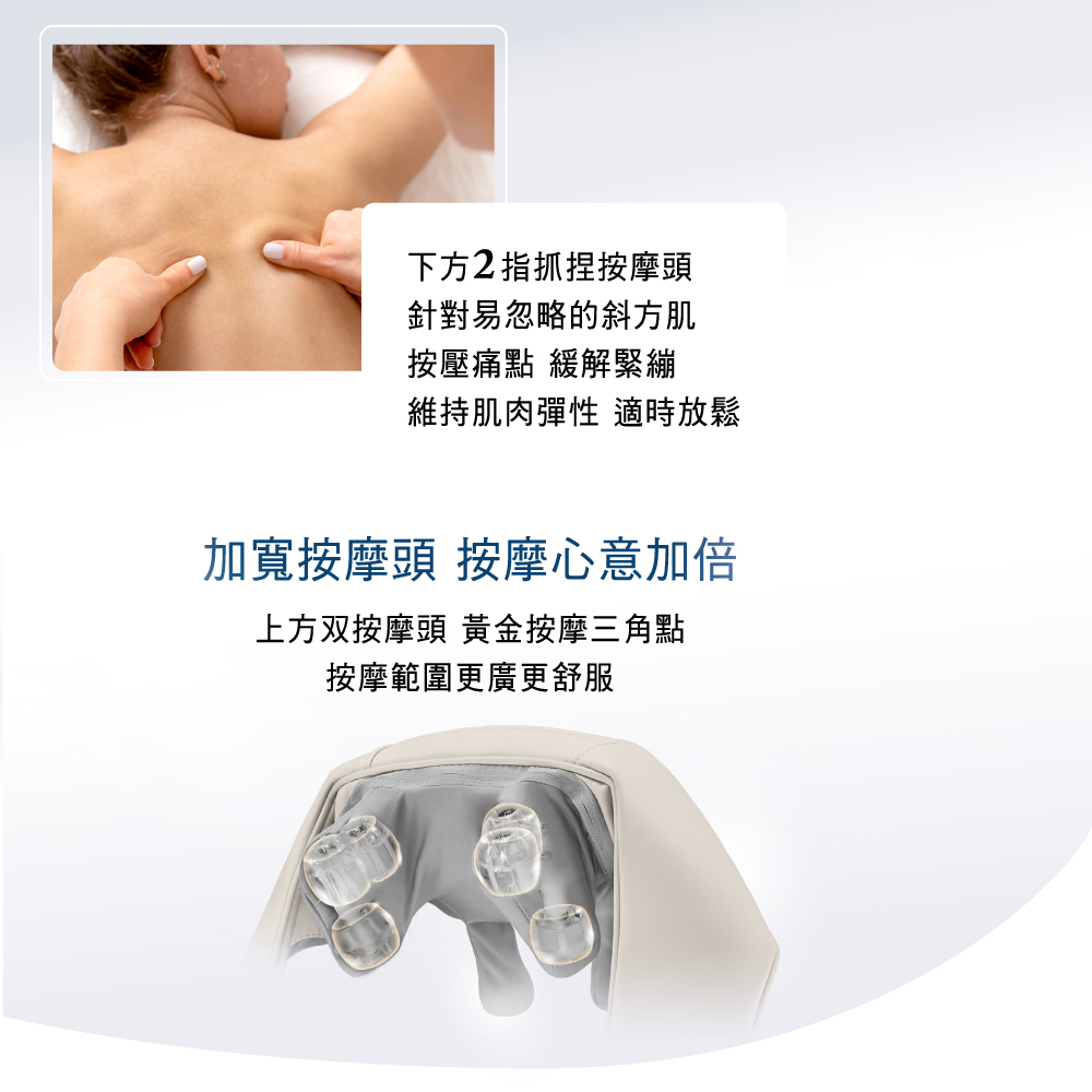 .上方双按摩頭,黃金按摩三角點,按摩範圍更廣更舒服