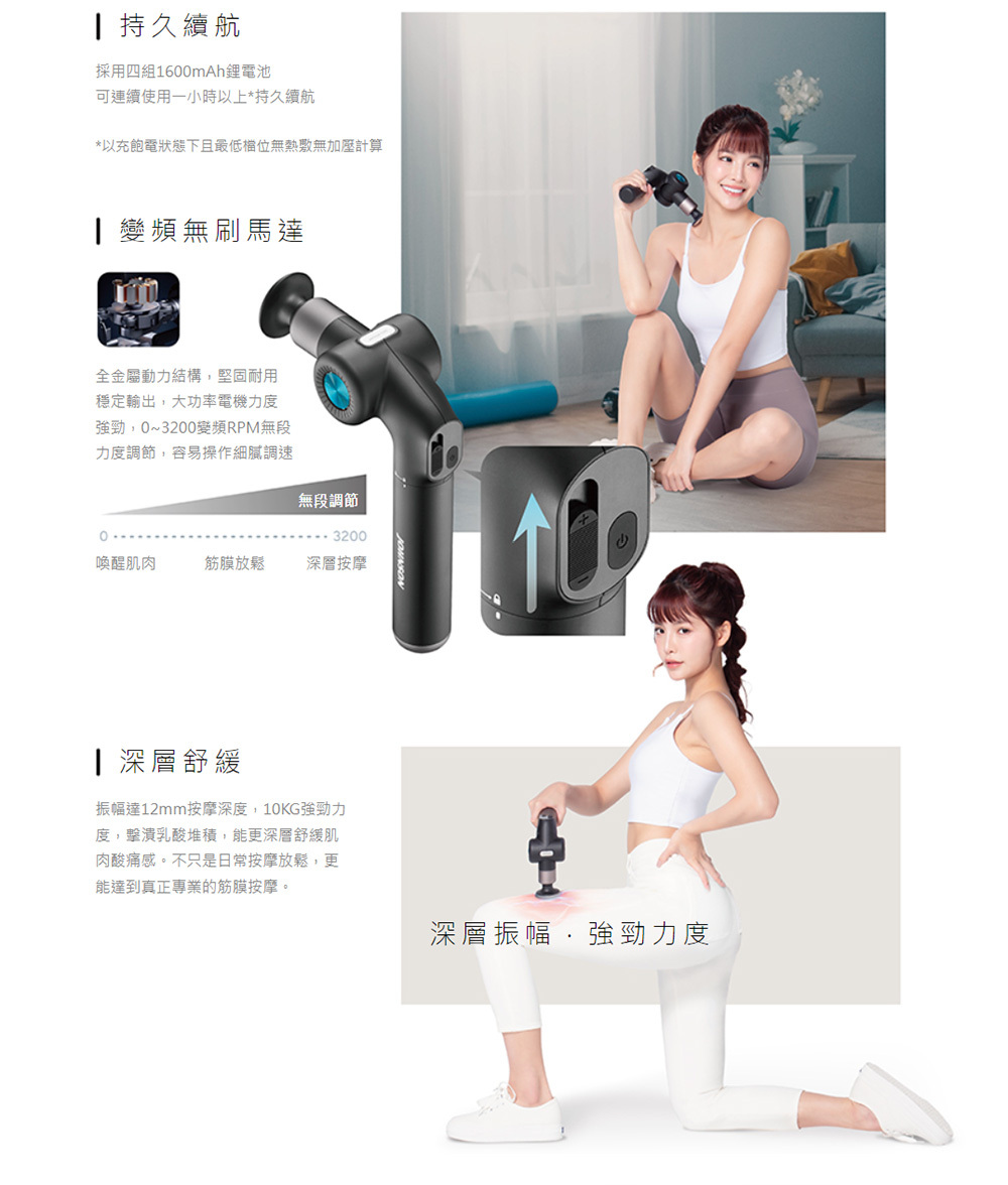 .12mm振福深度、10KG強勁力度,無段調節易操作,深層舒緩