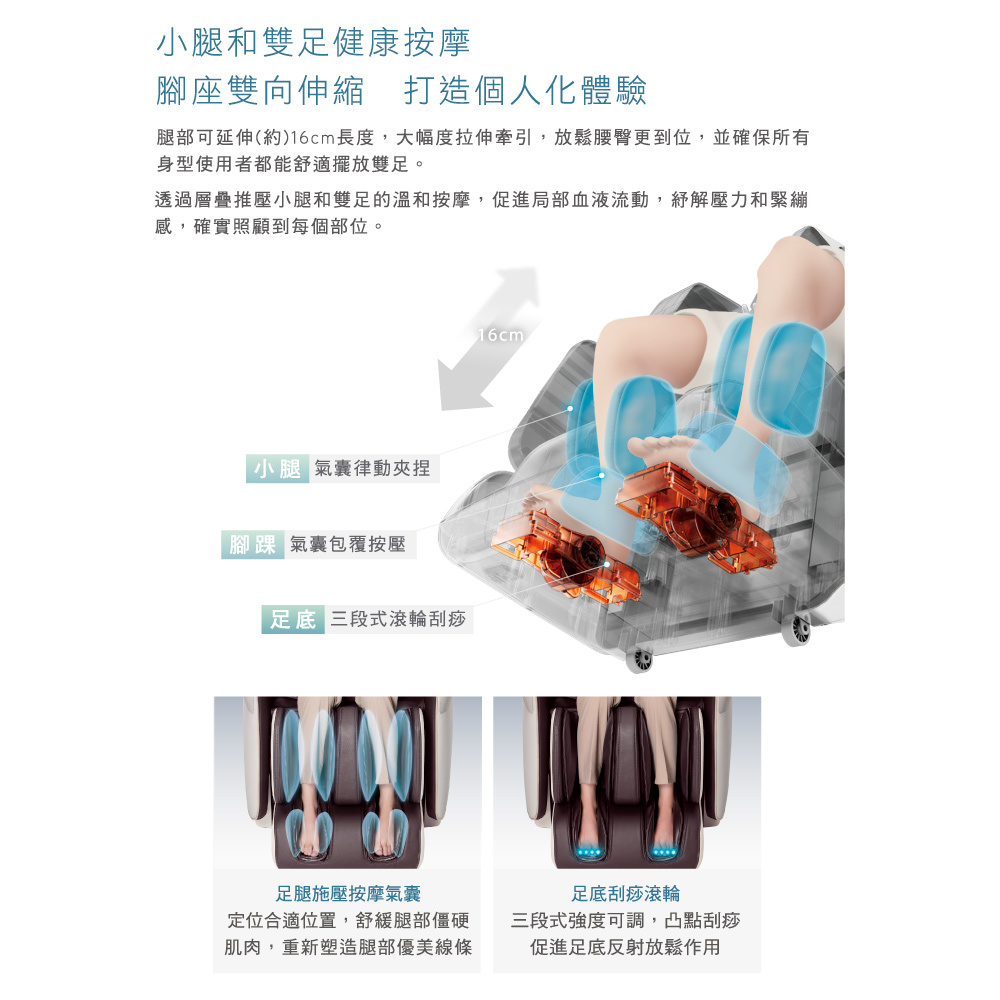 搭配130cm柔性導軌,超長按摩區間,按摩始終緊密貼合