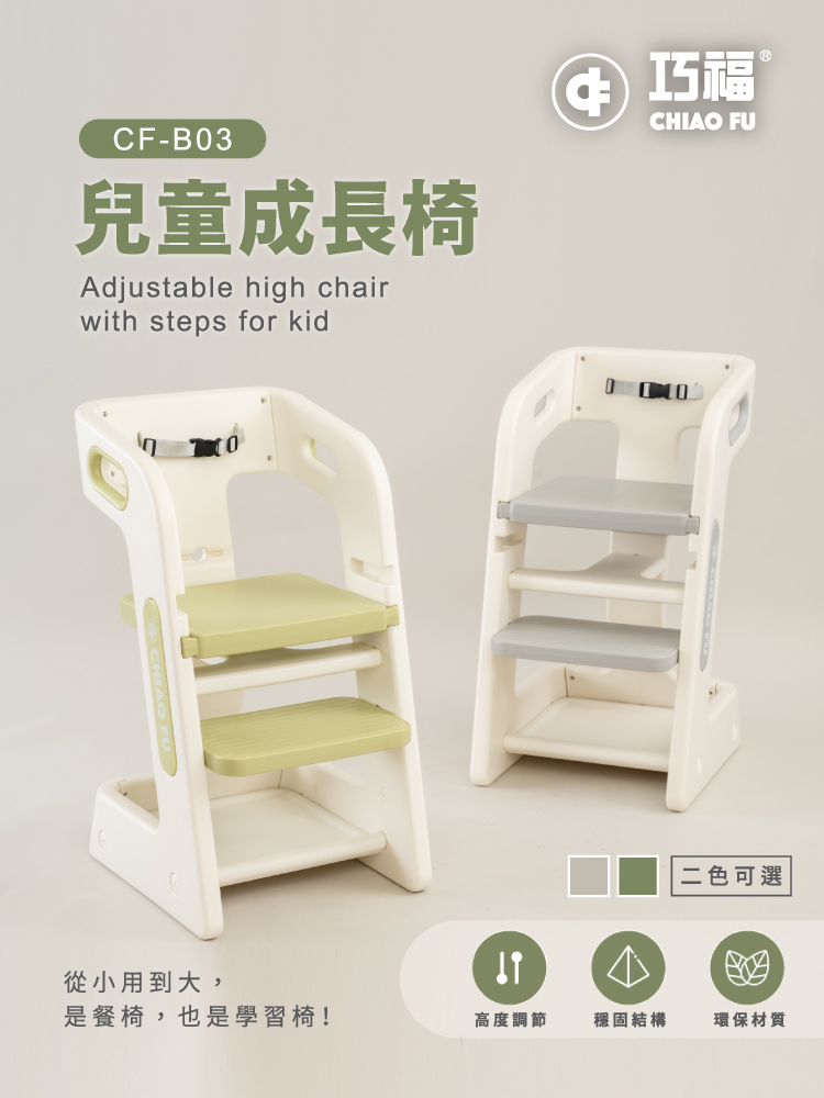 【巧福】兒童成長椅 CF-B04G (月牙灰) 兩檔可調
