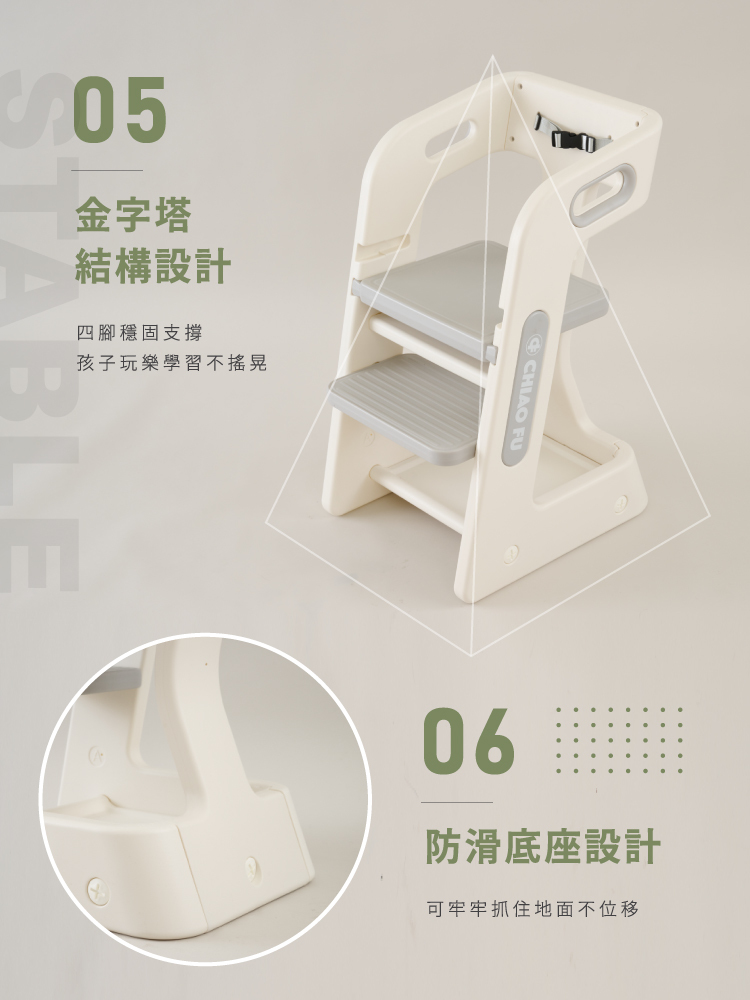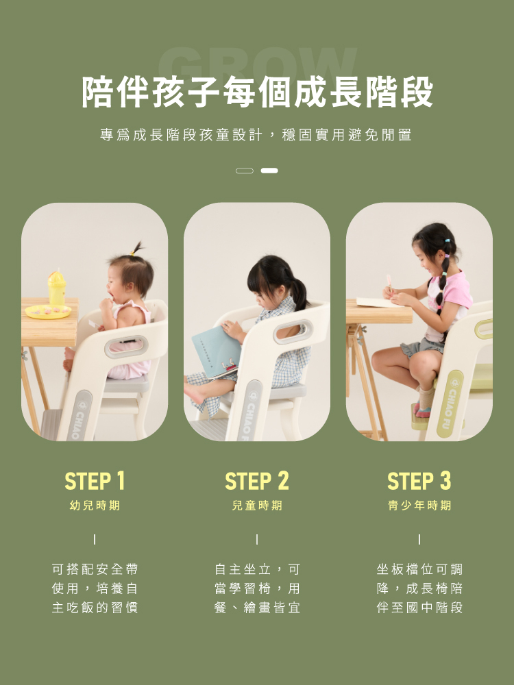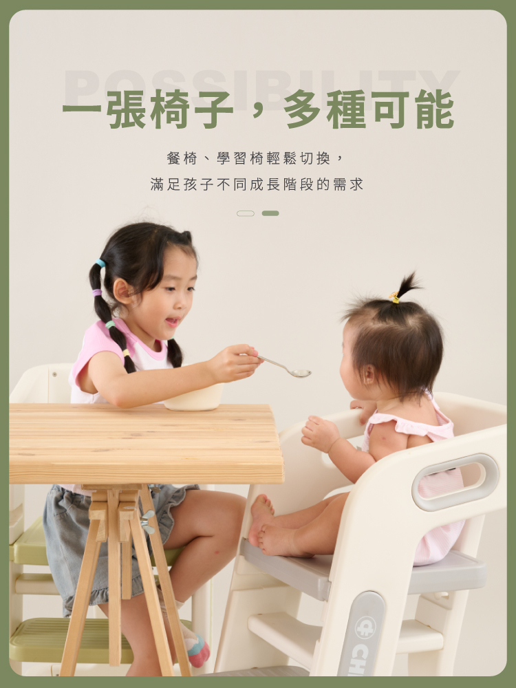 兒童時期:自主坐立,可當學習椅,用餐、繪畫皆宜