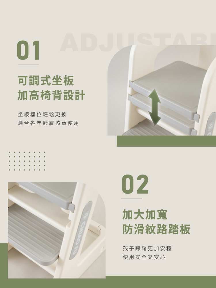 ■可調式坐板,加高椅背設計,適合各年齡層孩童