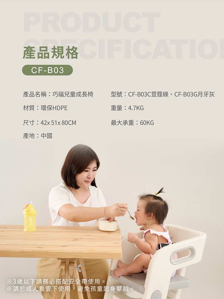 幼兒時期:可搭配安全帶使用,培養自主吃飯的習慣