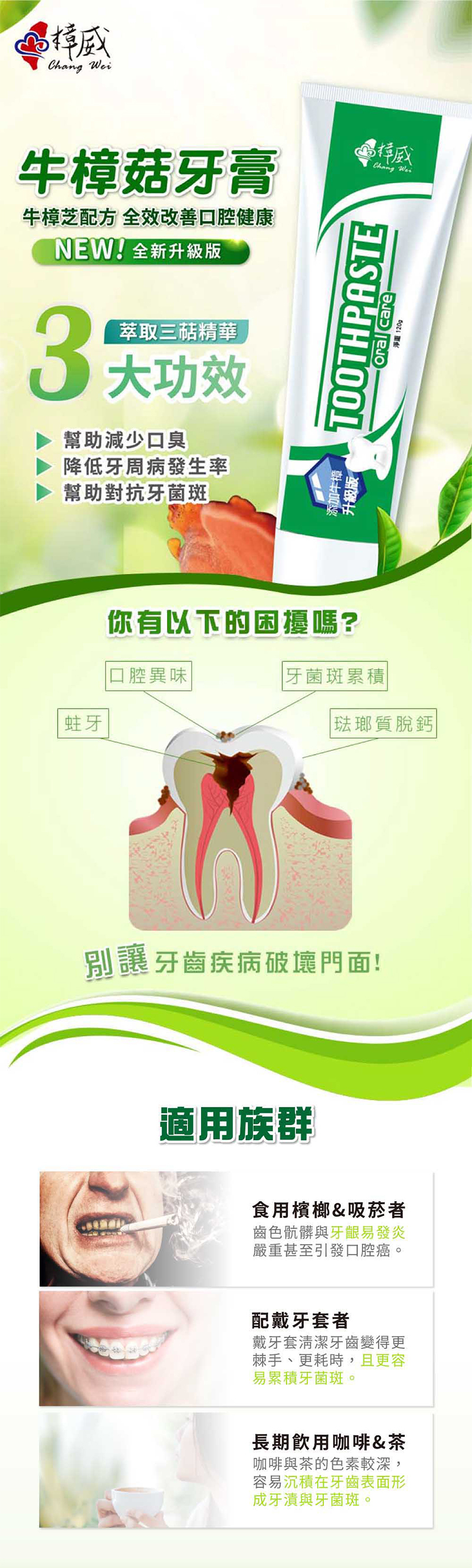 ✅ 降低牙周病發生 獨家牛樟芝配方,幫助強化口腔健康