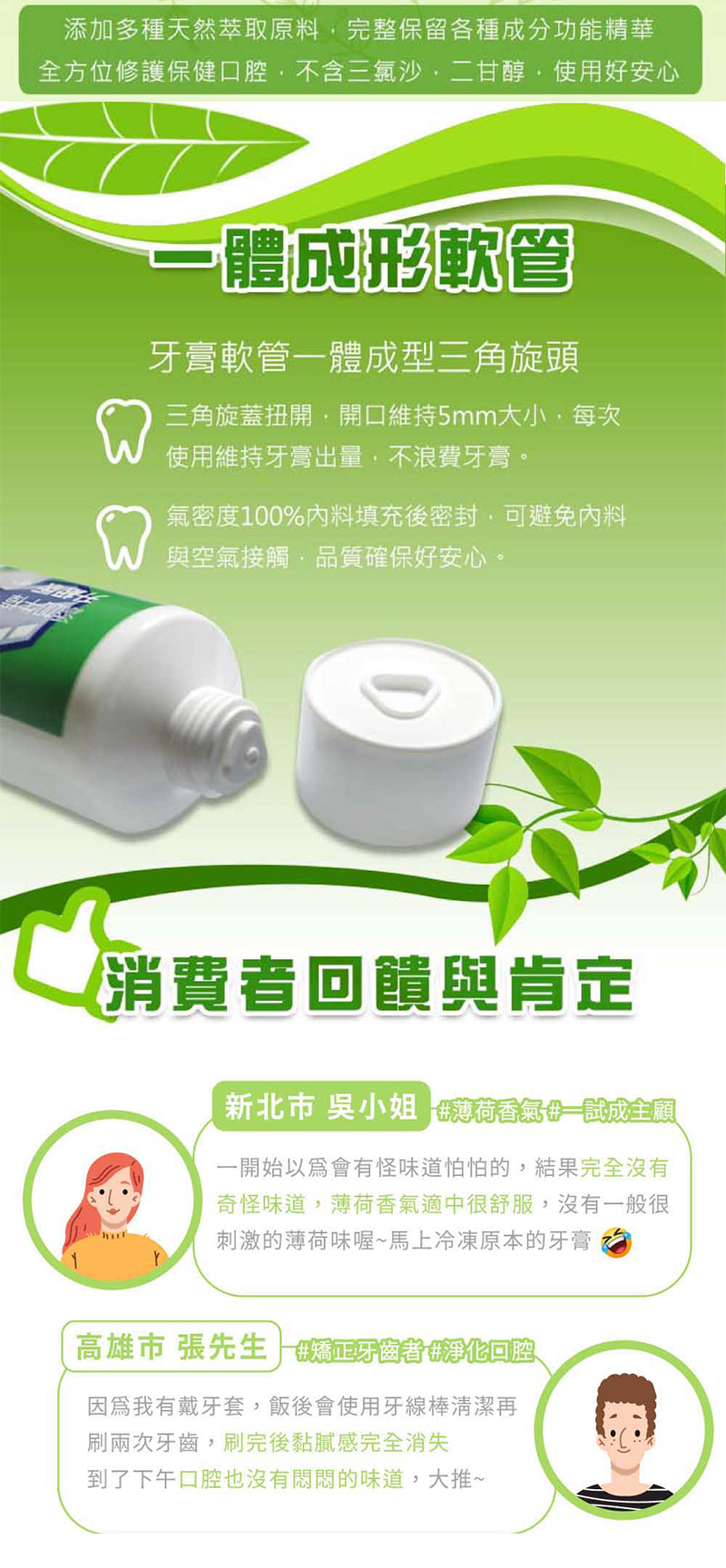 ✅ 幫助減少口臭 添加薄荷,幫助去除口中異味,保持口氣清新。