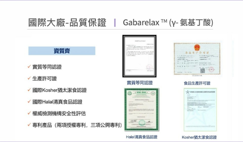 ★Gabarelax™(GABA):含有GABA,可調節生理機能,維持穩定狀態。