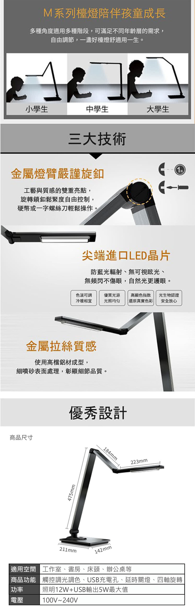 M多功能護眼檯燈-灰色 (HH-LT0617PA09)