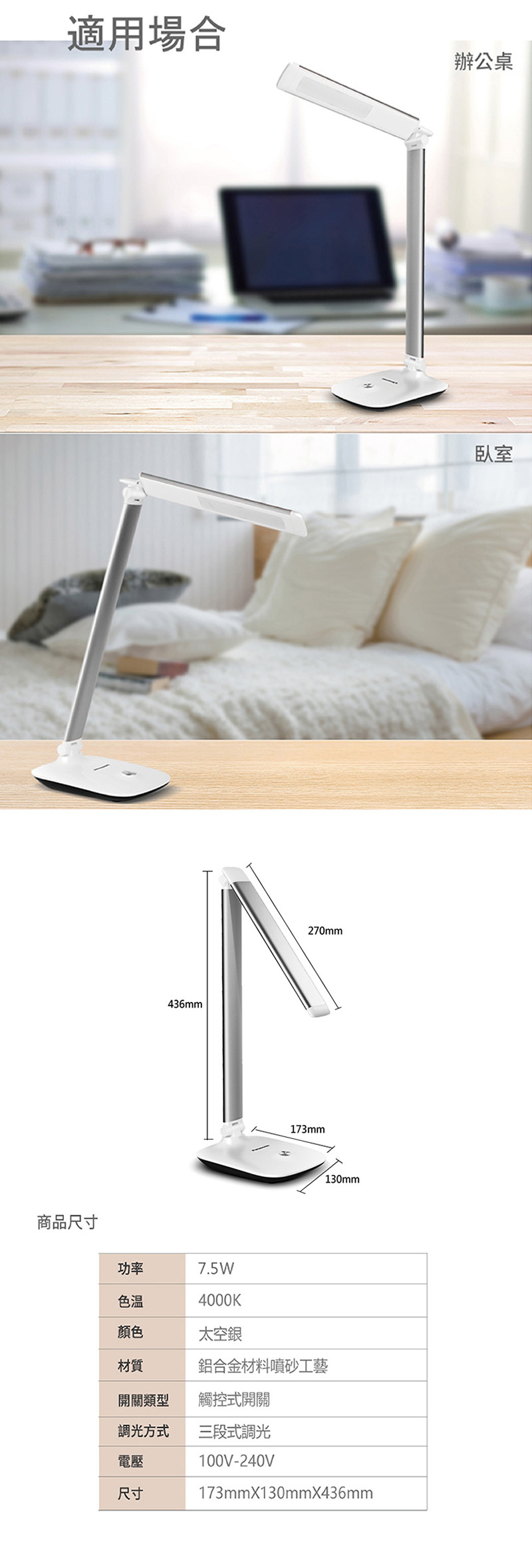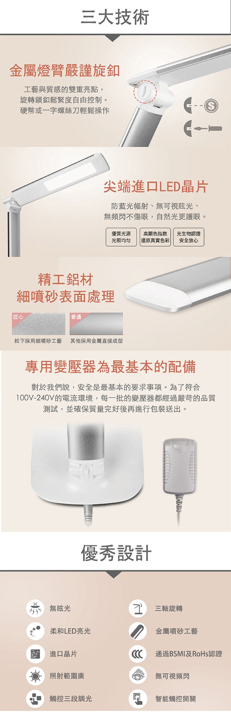 L輕盈護眼智慧檯燈-銀色 HH-LT0608P09