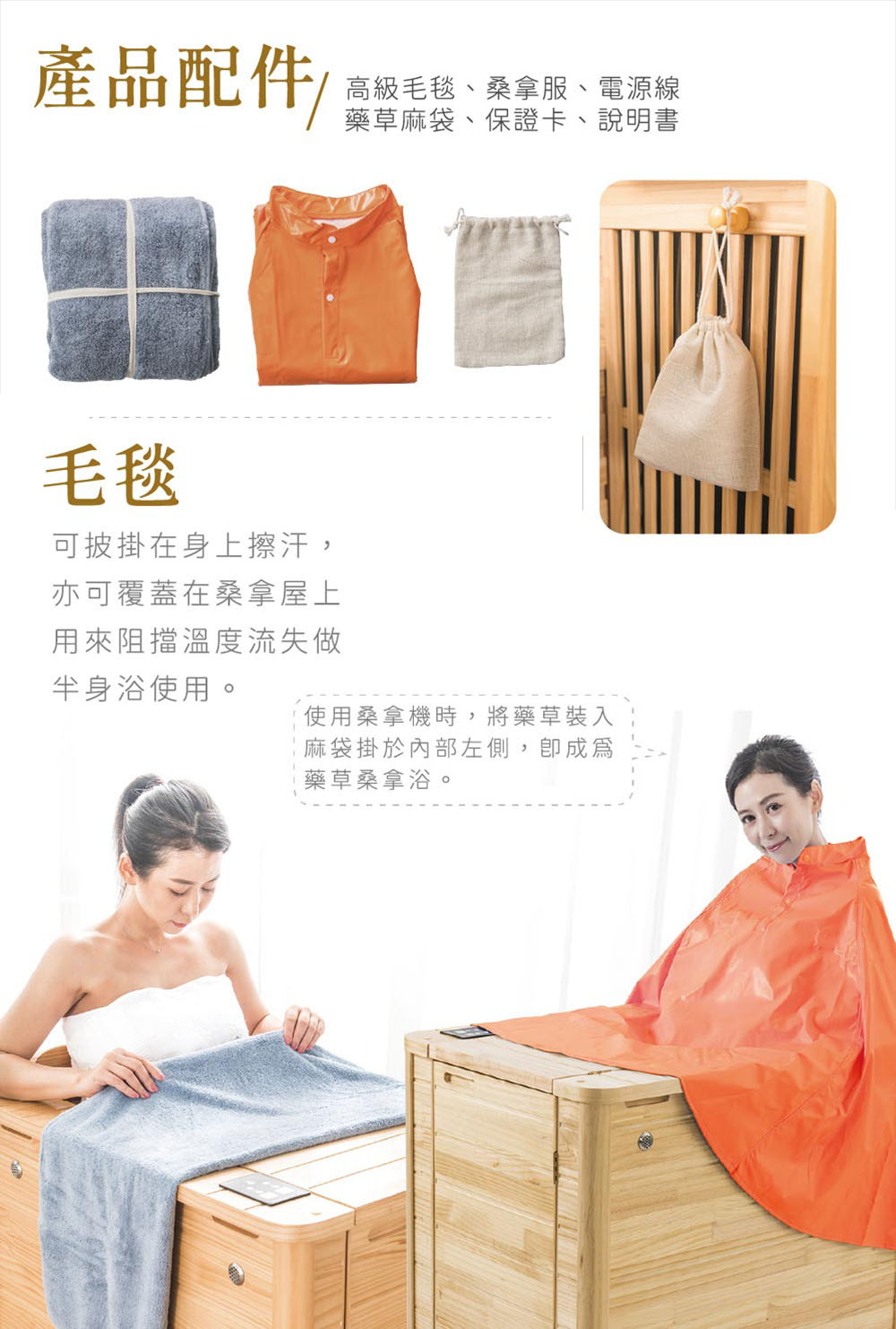 ■附贈:高級毛毯、桑拿服、藥草包x2、藥草麻袋、說明書、保證卡