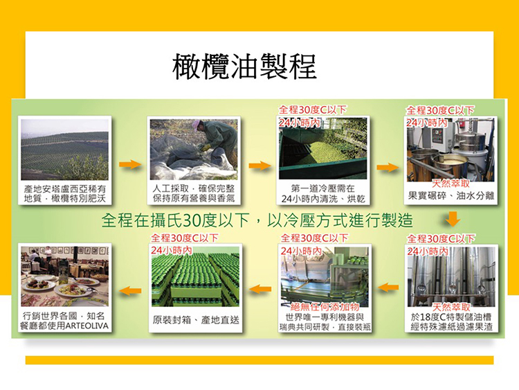 第一道冷壓初榨橄欖油,純度高、果香味濃郁