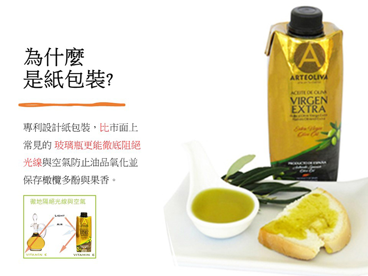 只有這個紙瓶才是純粹冷壓覽橄欖油的保證專利設計紙包裝、徹底阻絕光線和空氣,防止油品氧化