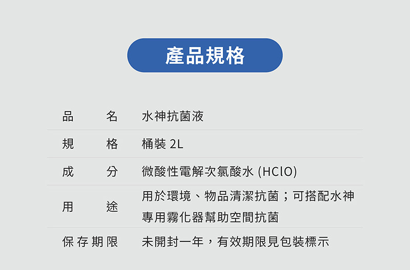 -請保留水神原廠不透光藍色空桶,能有效保存水神抗菌液,使用完後可至全台水神加水站購買水神抗菌液做補充,供水神噴霧器以及大小噴瓶使用。全國水神加水站地點連結: 點我
