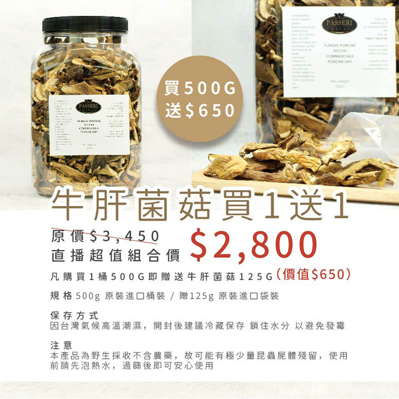 PASSERI 義大利牛肝菌菇500G (1入) / 原價$2,800