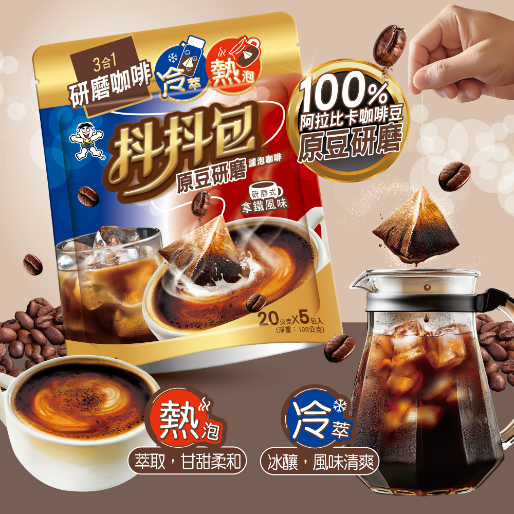 【旺旺】抖抖包濾泡咖啡-研磨式拿鐵風味100g(20g*5包/袋)