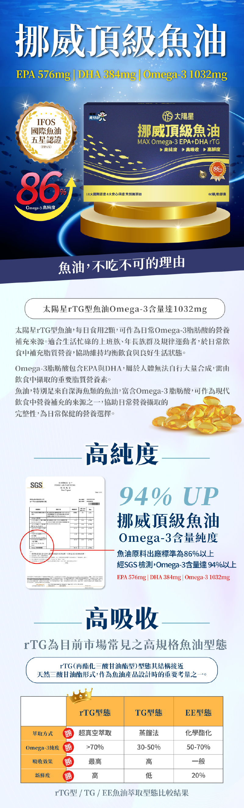 ☆高吸收:rTG為目前市場常見之高規格魚油型態