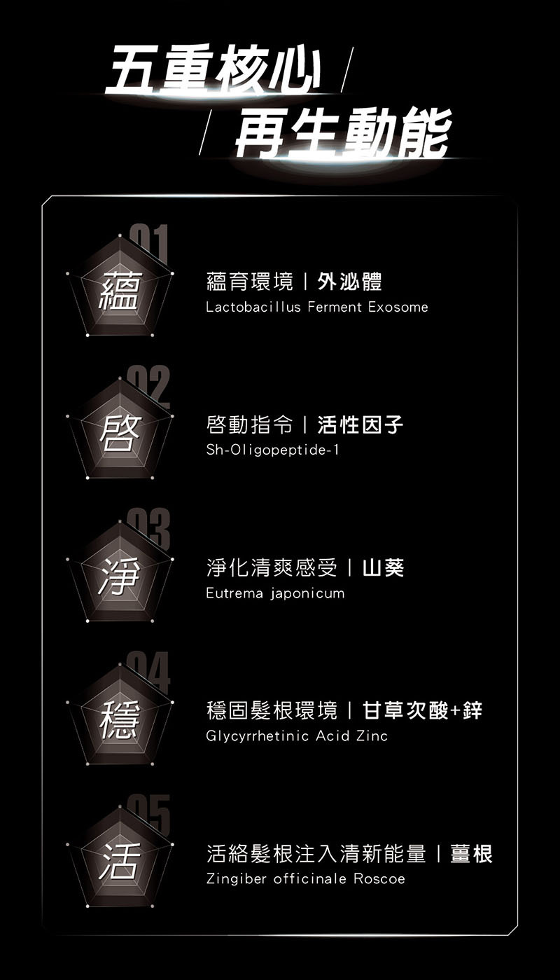 外泌體+活性因子直擊毛囊修護,搭配天然薑萃取,促進循環、強韌髮根。