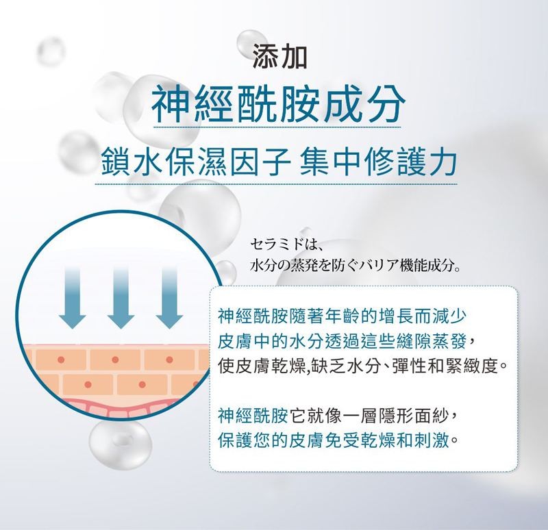 3.神經酰胺- 保濕+修護、保護肌膚表面屏障、減少皺紋出