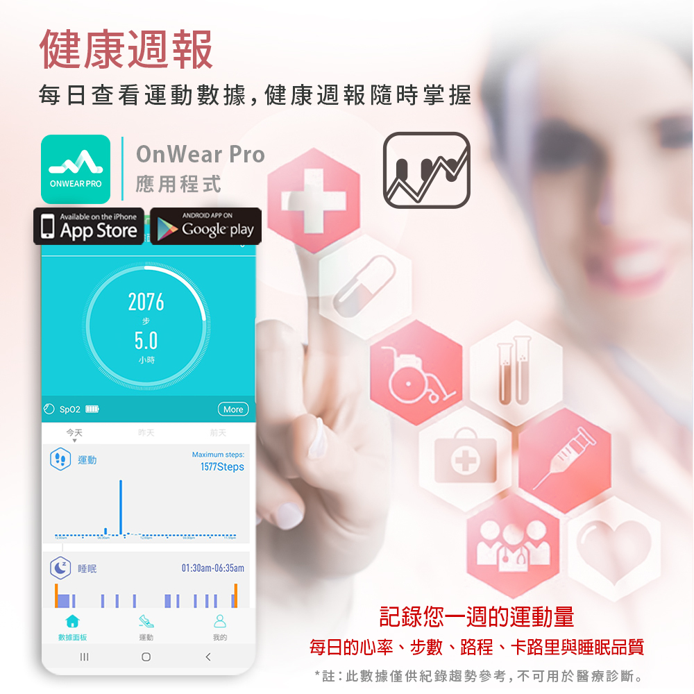 ● 即時、定時心率監測、心率警報 準確率高達95%以上