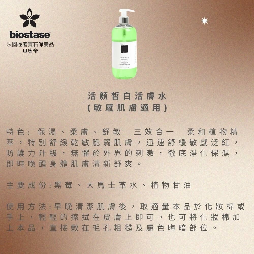 特色: 嫩白、柔膚、舒敏,三效合一。皙白力植物精萃,