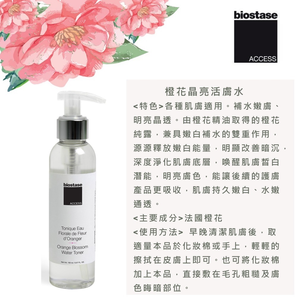 由橙花精油取得的橙花純露,兼具嫩白補水的雙重作用,源源釋放嫩白能量,明顯改善暗沉,深度淨化肌膚底層,喚醒肌膚皙白潛能,明亮膚色,能讓後續的護膚產品更吸收,肌膚持久嫩白、水嫩通透。