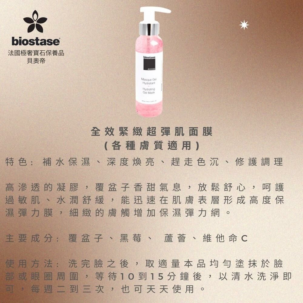 高滲透的凝膠,覆盆子香甜氣息,放鬆舒心,呵護過敏肌、水潤舒緩,高度保濕彈力膜,細緻的膚觸增加保濕彈力網。