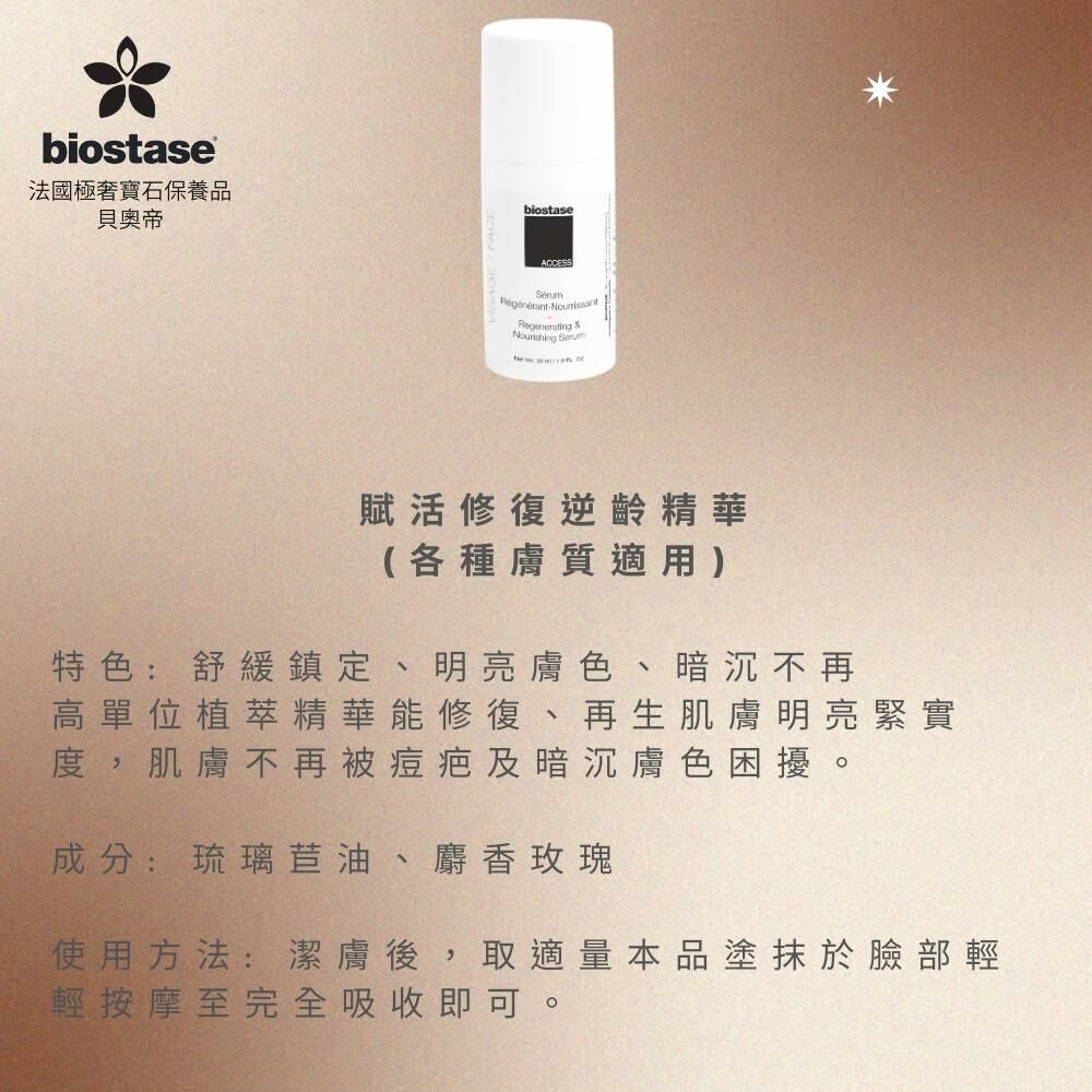 高單位植萃精華能修復、再生肌膚明亮緊實度,肌膚不再被痘疤及暗沉膚色困擾。