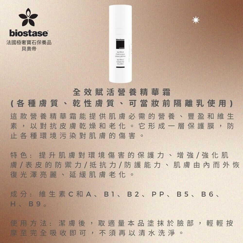 特色: 提升肌膚對環境傷害的保護力、增強/強化肌膚/表皮的防禦力/抵抗力/防護能力、維持肌膚彈性、晶亮光澤、肌膚由內而外散發光彩、延緩肌膚老化。