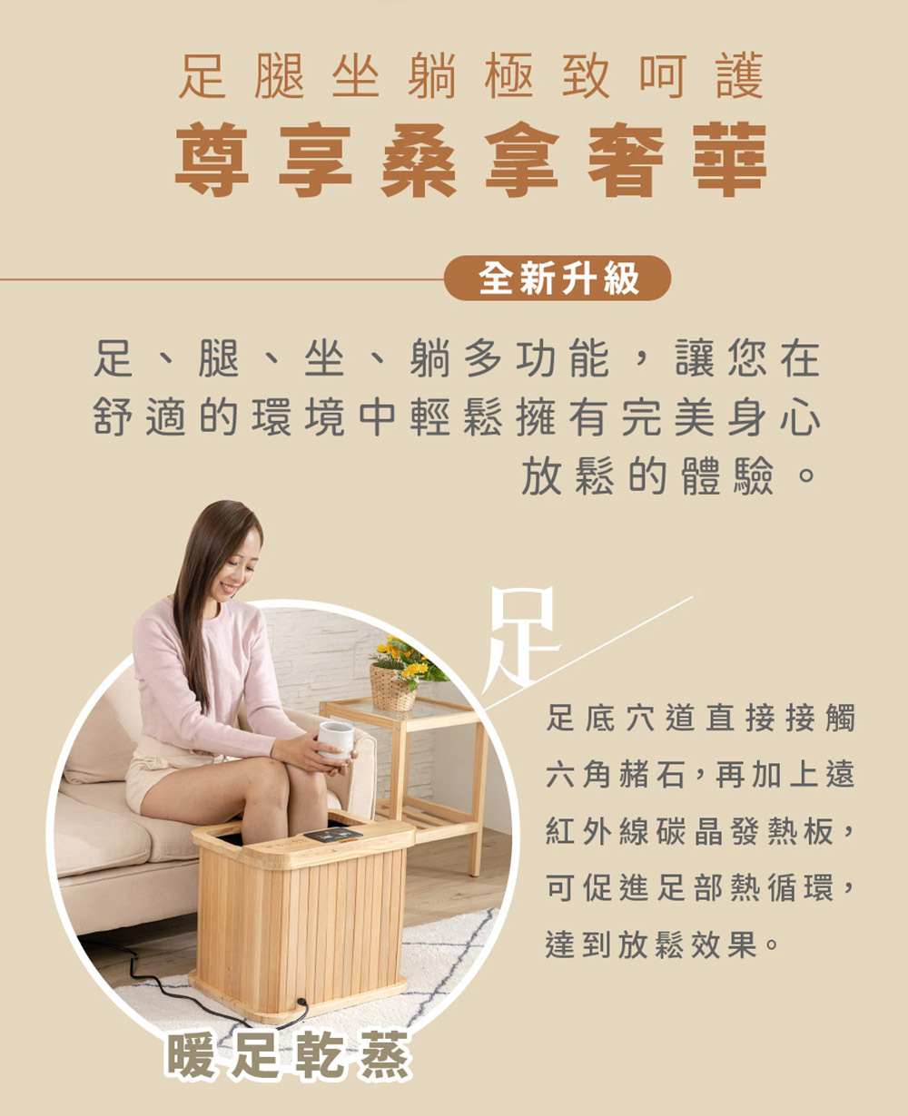 ◎上掀座板設計,足、腿、坐、躺,一機多用