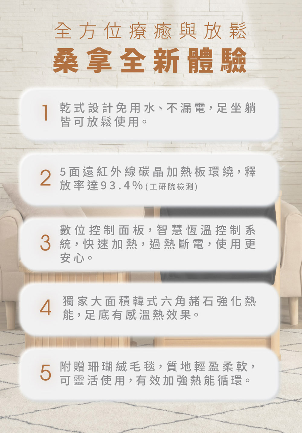 ◎碳晶加熱板全方位加熱,遠紅外線釋放率達93.4%