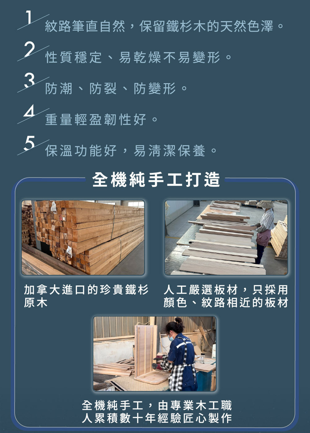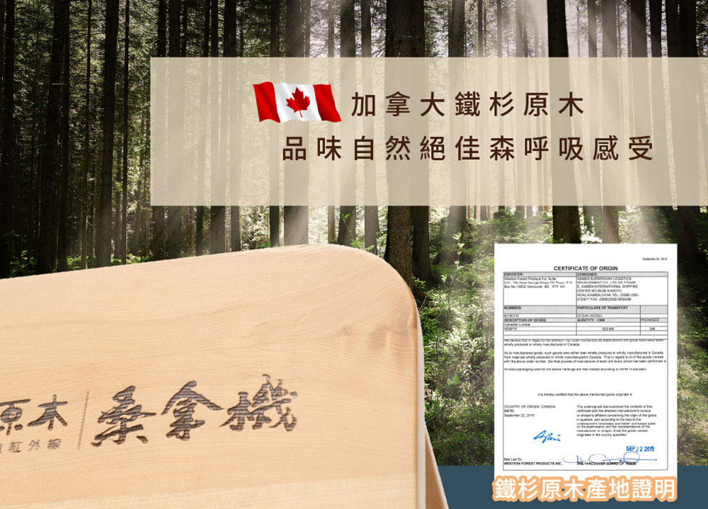 ◎嚴選加拿大鐵杉原木手工打造,釋放天然的芳香
