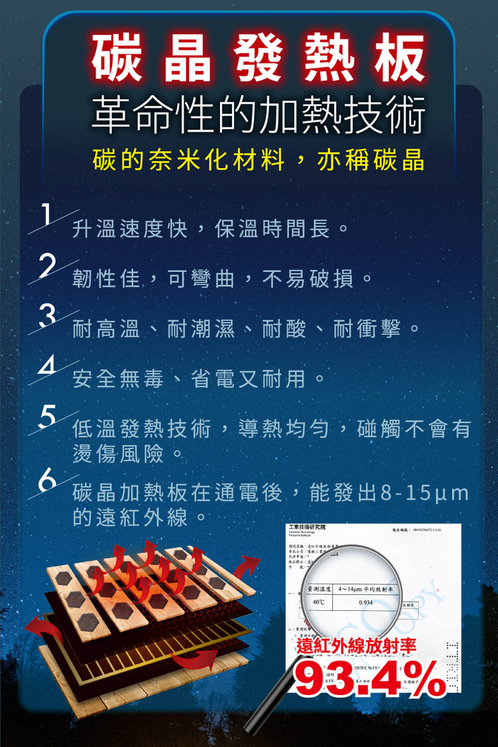 碳晶加熱板全方位加熱,遠紅外線釋放率達93.4%