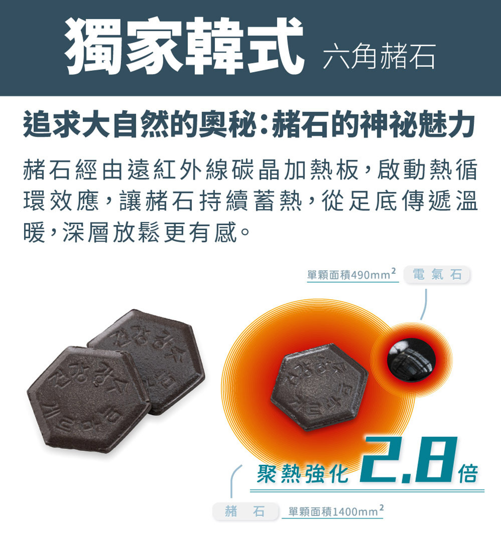 ◎獨家25顆韓式六角赭石,強化熱能吸收足底有感提升