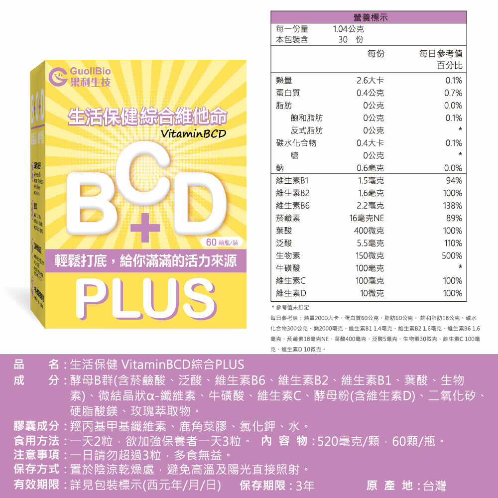 .1顆輕鬆補足BCD 3種營養,減少瓶瓶罐罐