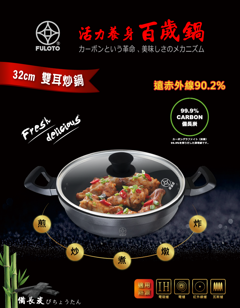 1.商品品名:遠紅外線全炭百歲鍋-32cm深炒鍋