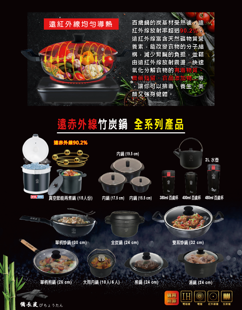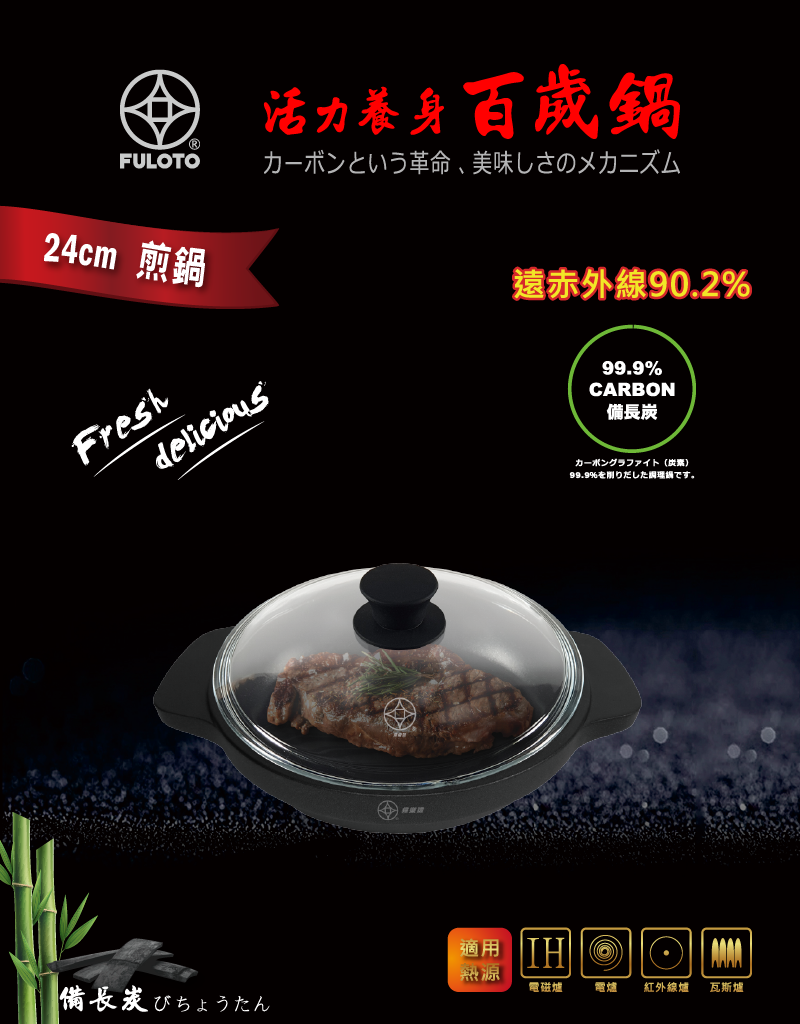 1.商品品名:遠紅外線全炭百歲鍋-24cm煎鍋