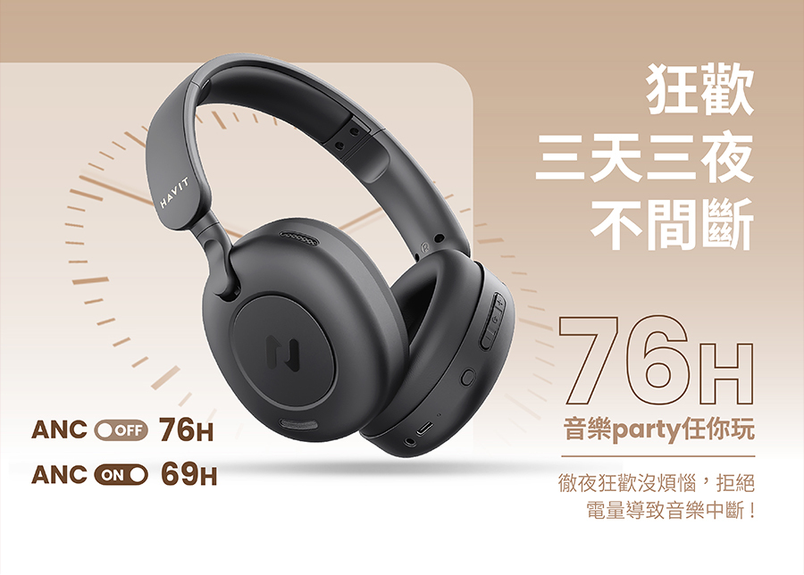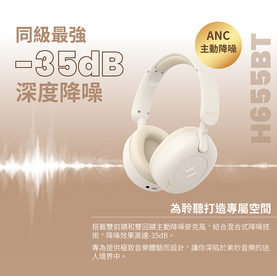 【海威特HAVIT】H655BT雙降噪ENC/ANC無線藍牙耳罩式耳機(多規格)