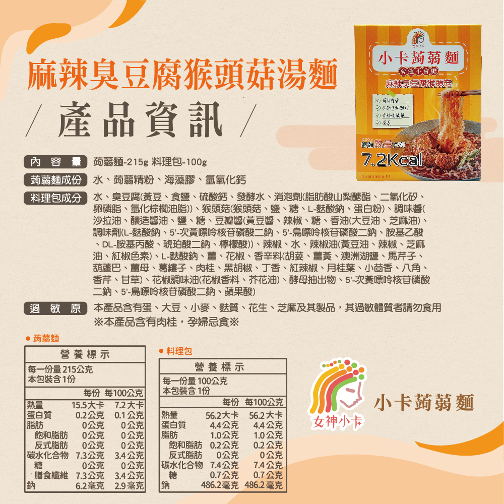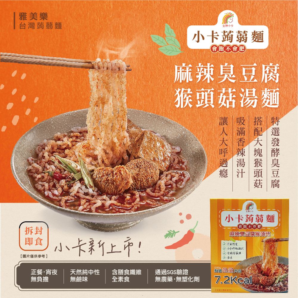 1.商品品名:小卡蒟蒻麵-麻辣臭豆腐猴頭菇