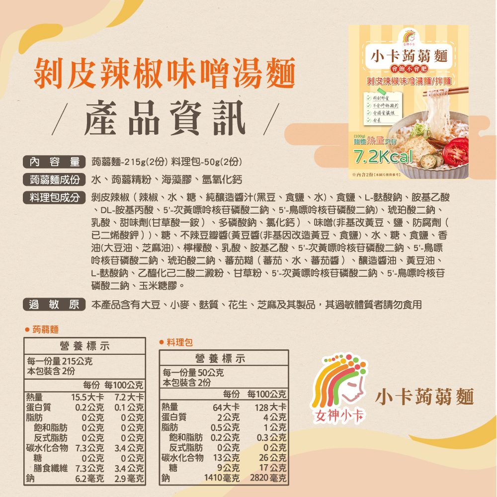 1.商品品名:小卡蒟蒻麵-剝皮辣椒味噌湯麵/拌麵