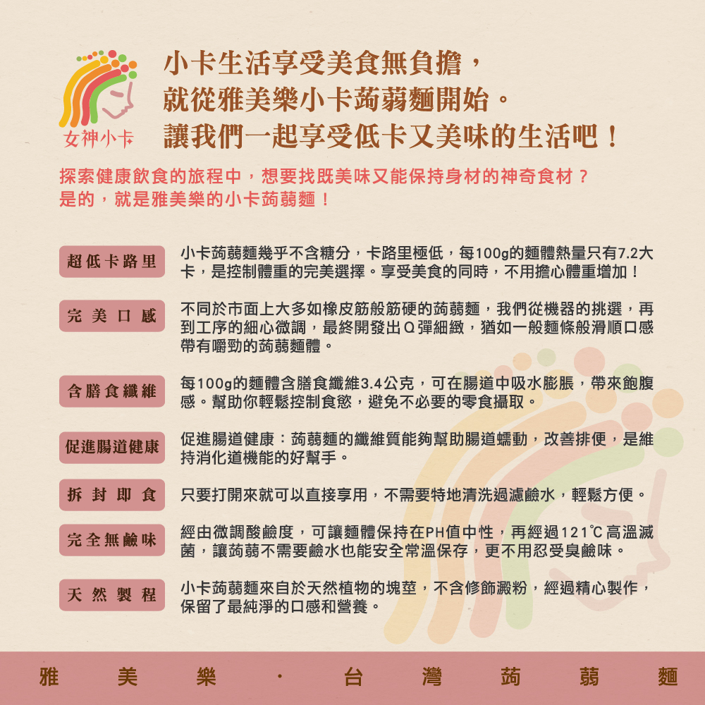 3.商品重(容)量:淨重:蒟蒻麵每份215公克(固形量150公克) 料理包每份50公克