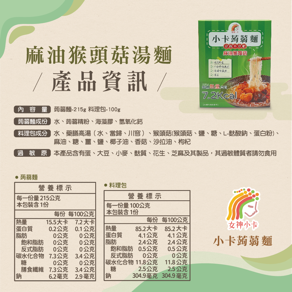 1.商品品名:小卡蒟蒻麵-麻油猴頭菇