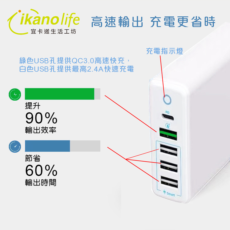 ■smart USB輸出電壓:5V/4.8A(最大每孔2.4A輸出)