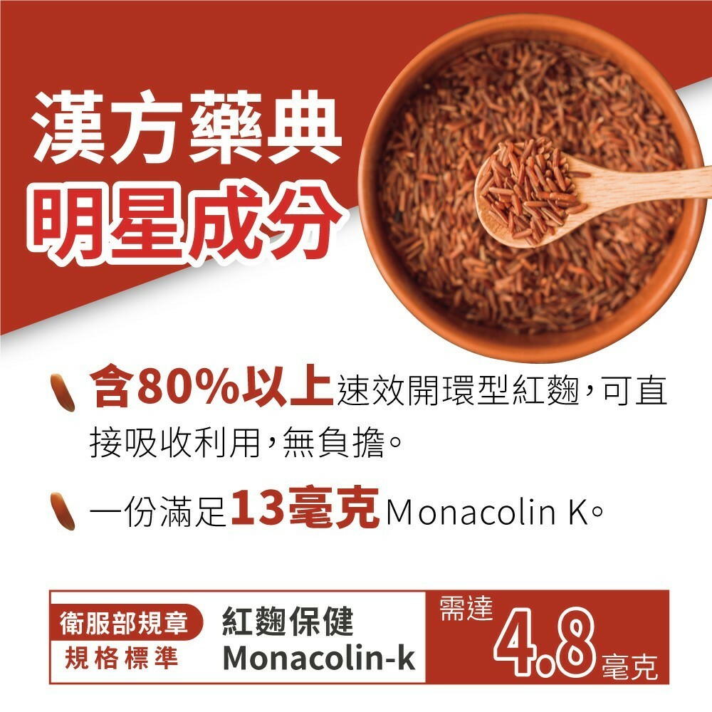 2.一份13毫克開環紅麴Monacolin K足量添加,不需經由肝臟代謝,可直接高效作用,降低負擔不傷身,流通順行有感。