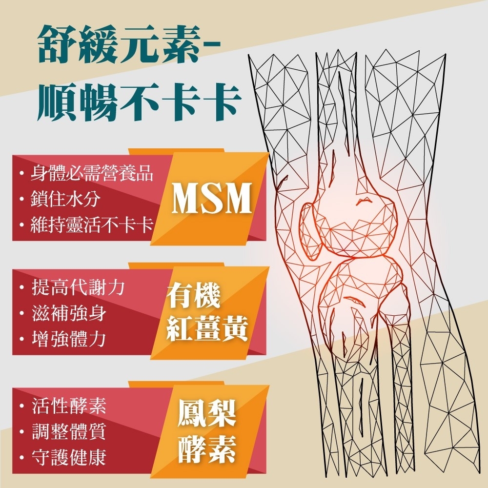 2.結合鳳梨酵素+Opti-MSM+有機紅薑黃,三重舒緩元素,舒緩三效有感。